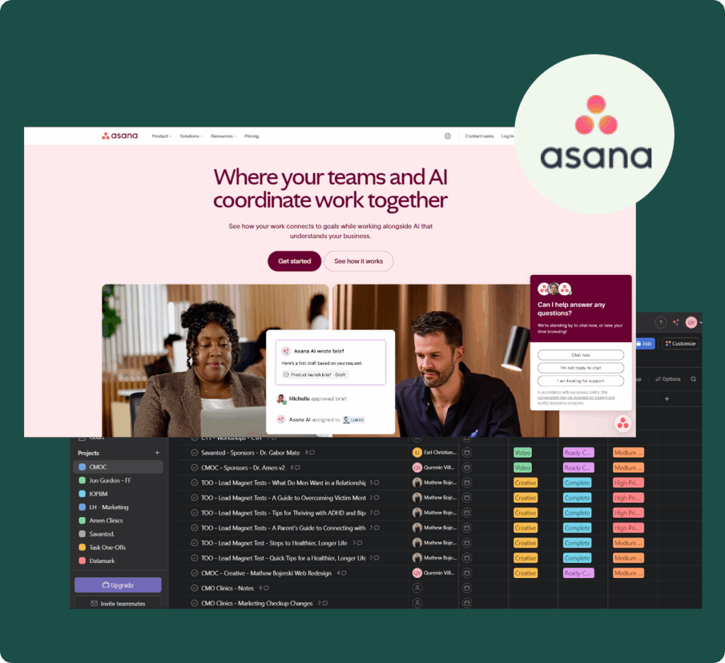 Every idea, request, and update runs through one shared project board in Asana. You’ll: